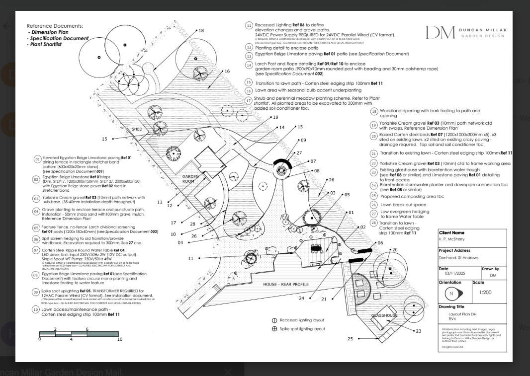 This will be produced in conjunction with detailed planting plans of the site and allow for close cooperation and involvement with the client in the planting design.